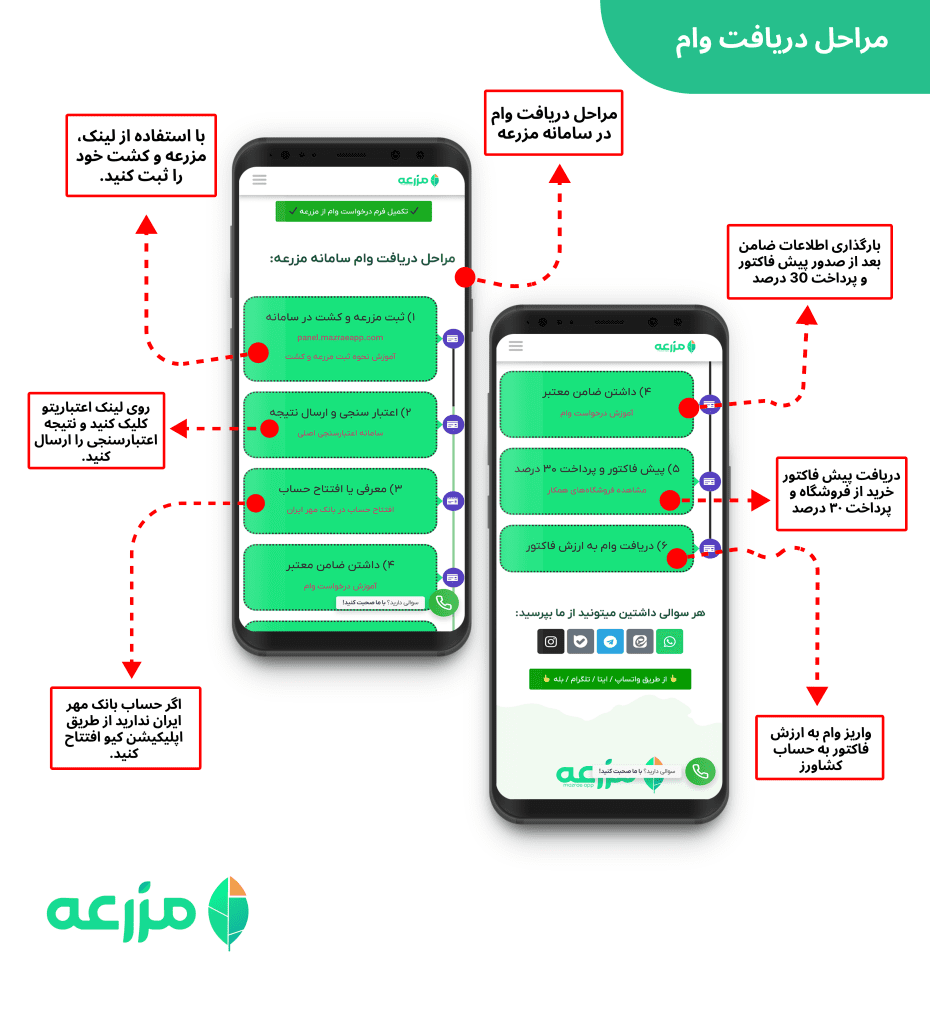 فرآیند دریافت وام کشاورزی از طریق سامانه مزرعه (۶ مرحله)