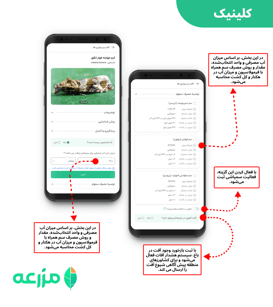 همچنین برای محاسبه روز درجه، از اواسط اسفند دیتالاگر در ارتفاع ۱٫۵ متری نصب شده و مجموع دماهای مؤثر از زمان بیوفیکس تا برداشت محصول ثبت میشود. این بازه با دوره فعالیت آفت همزمان است.